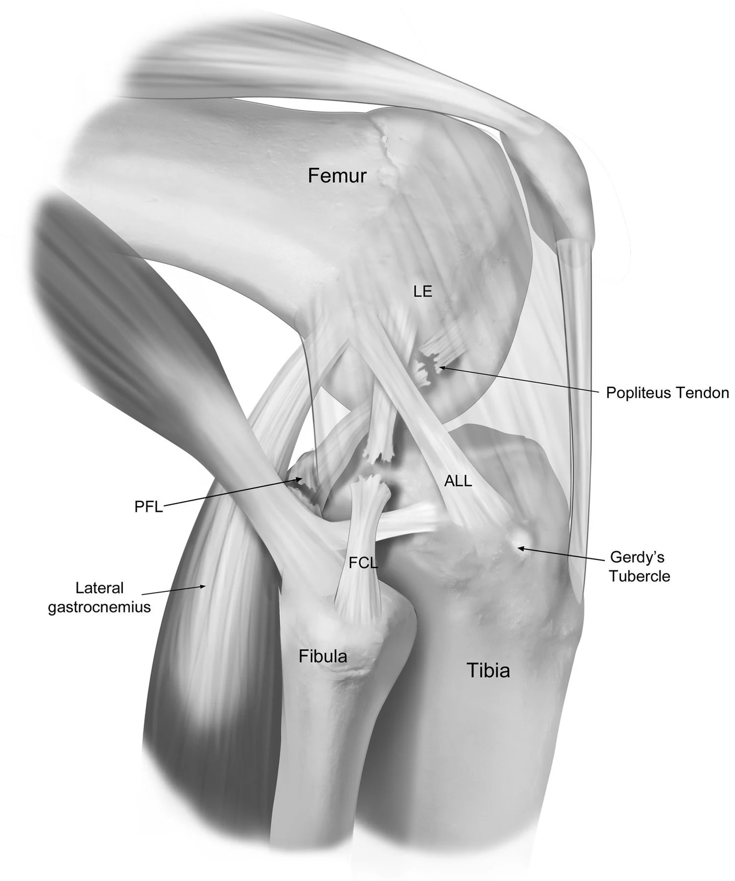 Posterolateral corner (PLC) injuries are traumatic knee injuries that are associated with lateral knee instability and usually present with a concomitant cruciate ligament injury.